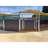 Le prix d’un exerciseur pour chevaux varient entre 3 000 € et 46 000 €, selon l’ossature métallique, le revêtement polyéthylène, la présence d’un toit, le type de clôture extérieure et la résistance de la structure galvanisée