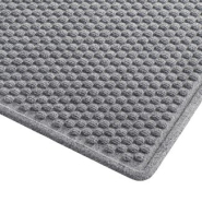 Ce revêtement de sol est fabriqué en caoutchouc, tandis que sa surface présente une structure alvéolaire. Cela lui confère une bonne résistance à l’abrasion et lui permet de bien gratter la semelle des chaussures. Ce type de tapis d’entrée grand format possède également des propriétés drainantes et antidérapantes, limitant les risques de chutes.