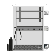 Selon le choix, les armoires de bouteilles à gaz en extérieur ne disposent pas généralement de protection coupe-feu, néanmoins la cabine grillagée permet une ventilation naturelle, et elle est soit entièrement grillagée, soit munie de paroi arrière tôlée.