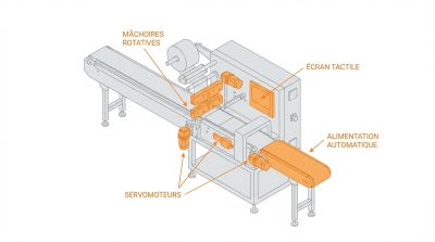 - Les ensacheuses à mâchoires rotatives (mouvement continu) atteignent 80 à 200 sachets/min. Elles exigent des servomoteurs coûteux mais réduisent les temps d'arrêt.