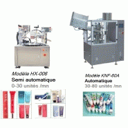 Le prix des remplisseuses linéaires de tubes va de 31 000 à plus de 54 000 euros. Elles servent à remplir automatiquement des tubes avec de la crème ou de la pommade. Ces modèles assurent en outre le scellage ou le bouchage des tubes en métal ou en plastique. Le volume de remplissage par contenant se chiffre entre 3 et 300 ml.