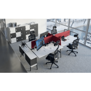 - Des cloisonnettes acoustiques entre les postes de travail pour absorber le son direct et créer une barrière physique au bruit.