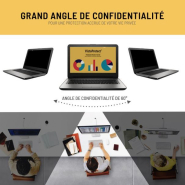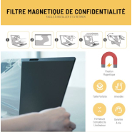 - Les filtres de 27 pouces et plus sont destinés aux postes fixes à large affichage. Ils couvrent toute la surface de l’écran et limitent les risques d’espionnage visuel.