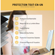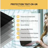 Ce film anti-reflet agit comme une barrière contre les regards indiscrets. Il empêche la divulgation involontaire d’informations confidentielles dans des environnements où la visibilité de l’écran est exposée, comme les bureaux partagés, les open spaces, les aéroports ou les trains. Sur le plan ergonomique, il protège également la surface de l’écran contre les rayures, traces et poussières, tout en intégrant souvent un filtre anti lumière bleue qui réduit la fatigue oculaire liée à une exposition prolongée.