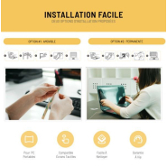 - Système de crochets : se fixe sur le cadre du moniteur sans contact direct avec la dalle, idéal pour les bureaux partagés.