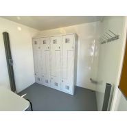 Une base vie de chantier sur roues est aménagée de manière à offrir le plus de commodité possible aux équipes de travail restant sur place. Elle est composée de plusieurs compartiments dédiés au réfectoire, au bureau, à la cuisine, au vestiaire, aux sanitaires. C’est le type d’abri de chantier mobile le plus complet en termes d’équipements et d’aménagement.
