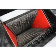 - Des blindages latéraux en acier au manganèse, résistants à l’abrasion