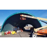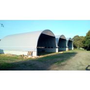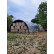 Une fois la structure montée, la bâche du tunnel de stockage agricole peut être posée, tendue et fixée. Elle doit être soigneusement étirée pour éviter la formation de plis ou de poches d’eau, susceptibles de fragiliser la couverture et d’entraîner une usure prématurée. L’opération doit être réalisée par temps calme, sans vent, afin de garantir une pose sécurisée et efficace. Il est recommandé de fixer d’abord les extrémités, puis de tendre progressivement la bâche sur toute la longueur. L’utilisation de tendeurs, de profils de fixation ou de barres de tension facilite l’ajustement et améliore la tenue dans le temps.