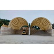 Un tunnel de stockage nécessite des arceaux, des poteaux de support, une bâche tunnel, ainsi que des outils de montage et de fixation tunnel (pieds platines, piquets d'ancrage, etc.). Il est important de choisir des matériaux résistants aux conditions climatiques de la région d’installation. Par exemple, un sol meuble requiert l’usage de disques hélicés pour ancrer solidement la structure, tandis que des pieds platines conviennent à un sol plus dur. La qualité de l’acier (galvanisé ou non), l’épaisseur de la bâche (généralement en PVC ou PE), ainsi que son traitement anti-UV et anti-déchirure sont des éléments déterminants pour la durabilité de l’abri et peuvent faire varier le prix d'un tunnel agricole.