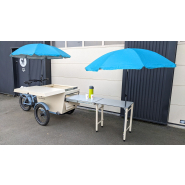 Le tarif d’achat d’un vélo cargo pour vente ambulante va de 4 000 à 12 000 euros en fonction de la taille de la caisse et des équipements comme des systèmes de réfrigération ou de chauffage. Il permet aux commerçants de vendre leurs produits directement dans la rue ou sur les marchés. Il peut s’agir de vente de glaces, crêpes, snacks, boissons, fleurs ou de produits artisanaux.