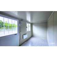 - Équipements nécessaires : les dimensions du bungalow de chantier doivent aussi tenir compte des équipements nécessaires. Si l’espace doit inclure une plomberie, électricité et chauffage, cela nécessite un plus grand espace pour installer ces systèmes tout en garantissant la sécurité et le confort des utilisateurs.