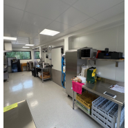 Zone de nettoyage : dotée de bacs de plonge, de lave-mains et de matériel de désinfection pour maintenir une propreté des ustensiles et des surfaces.
