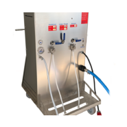 - Centrales de nettoyage : ces dispositifs assurent la distribution, le dosage et l’envoi des solutions de nettoyage ou de désinfection vers différents points d’utilisation. Elles peuvent être configurées pour fonctionner avec un seul produit ou avec deux produits distincts, généralement un détergent et un désinfectant. Le mélange des produits avec l’eau et leur distribution sont assurés à travers un réseau de tuyauterie, souvent associé à des lances ou des systèmes de pulvérisation.