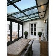 - La véranda aluminium Clarence mise sur la lumière naturelle et l’isolation pour créer une pièce habitable toute l’année.