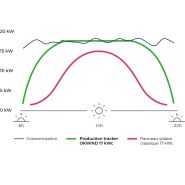 Les entreprises recherchent une optimisation de la production pour réduire les achats d’électricité. Un tracker solaire améliore la production linéaire et permet un lissage de la courbe de production par rapport à la courbe de consommation.